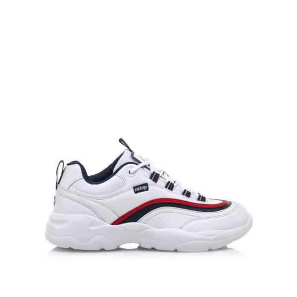Deportivo Mustang de mujer, fabricado en polipiel. Cierre de cordones, plantilla acolchada. Este modelo combina un piso con plataforma para darle un aspecto más moderno a todo el conjunto.